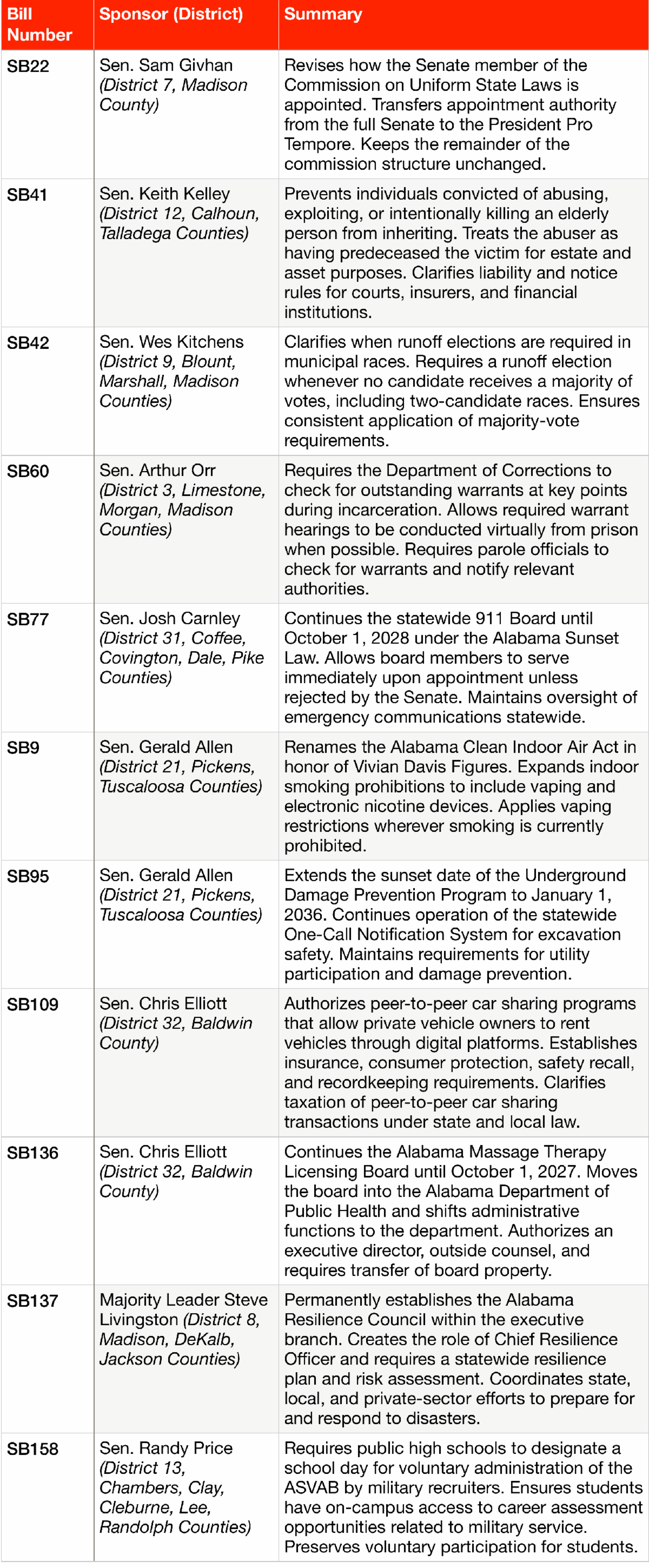 Also in the Senate, Senator Gerald Allen passed legislation updating Alabama’s indoor smoking law to include vaping, extending existing public health protections to reflect modern products and usage.