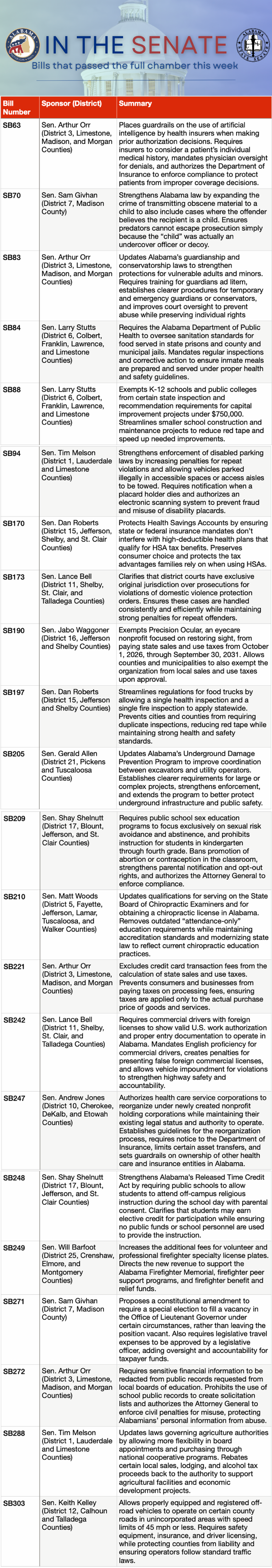 Momentum continues to build in Montgomery. Week Six of the legislative session reflected steady, disciplined progress on the Conservative priorities that matter most to Alabama families.
