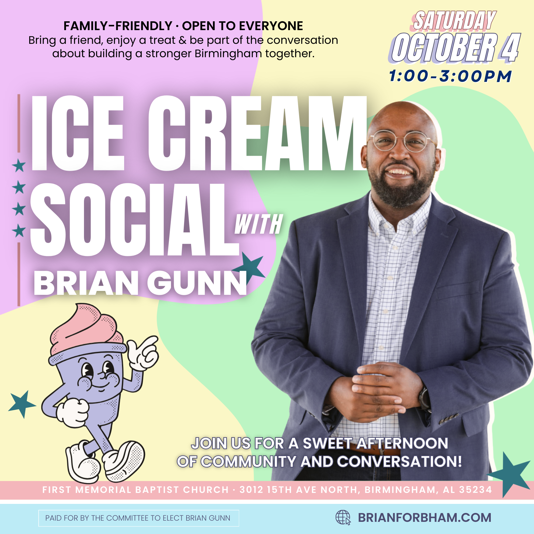 Free, family-friendly event is part of Brian's effort to meet voters, listen to their concerns, and share his vision for District 4
