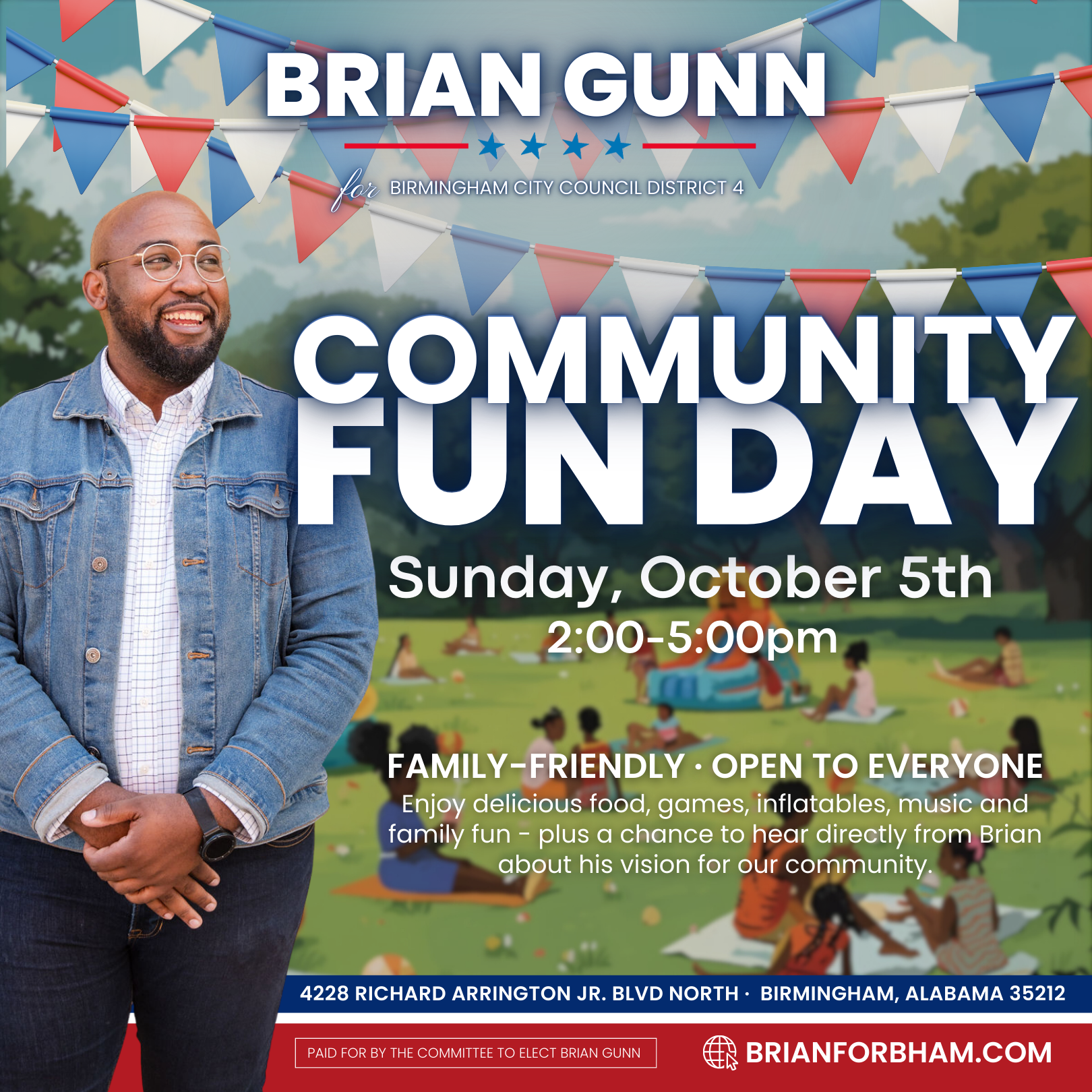 Brian Gunn is a lifelong Birmingham resident running for City Council in District 4. His campaign spotlights three priorities: safer streets, stronger neighborhoods, and a City Hall that listens.