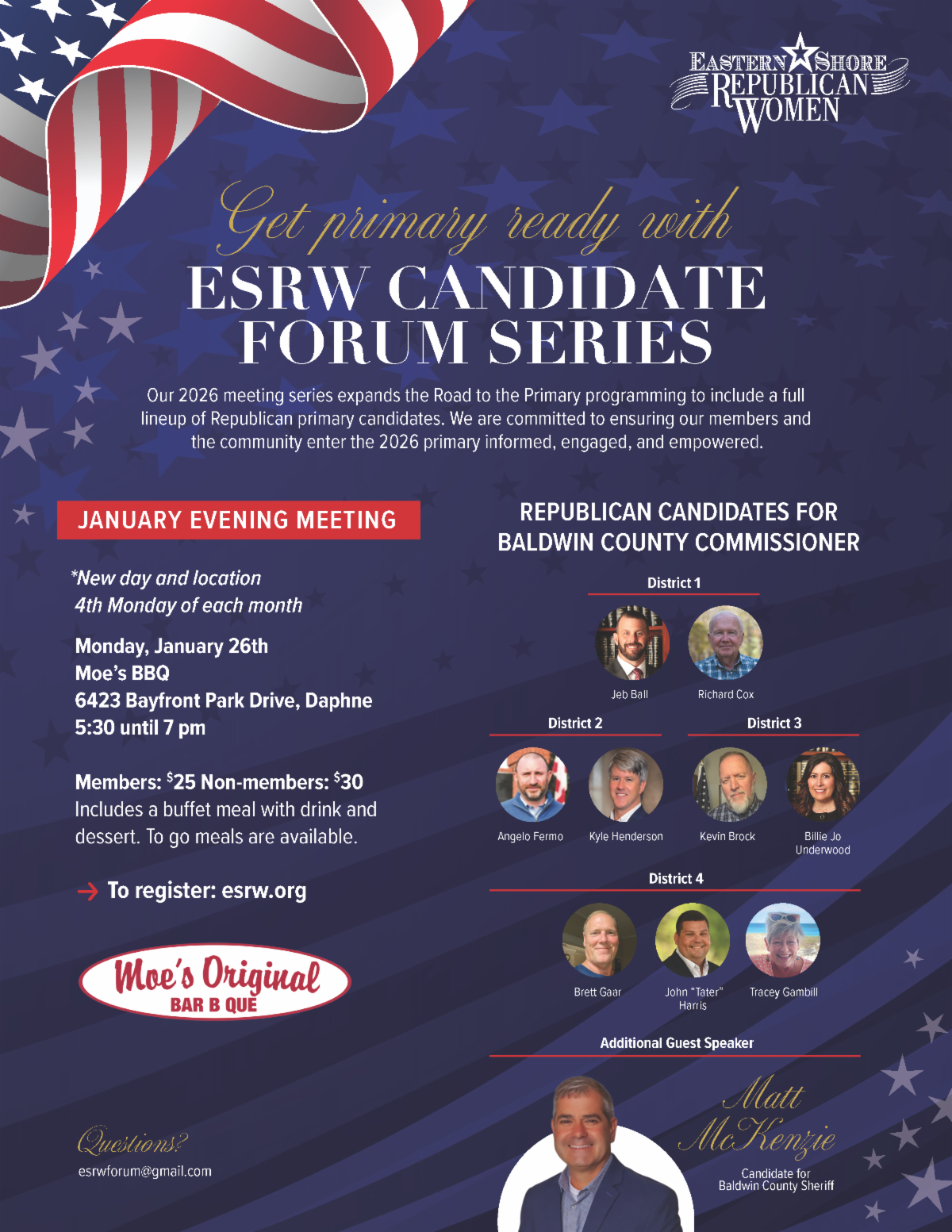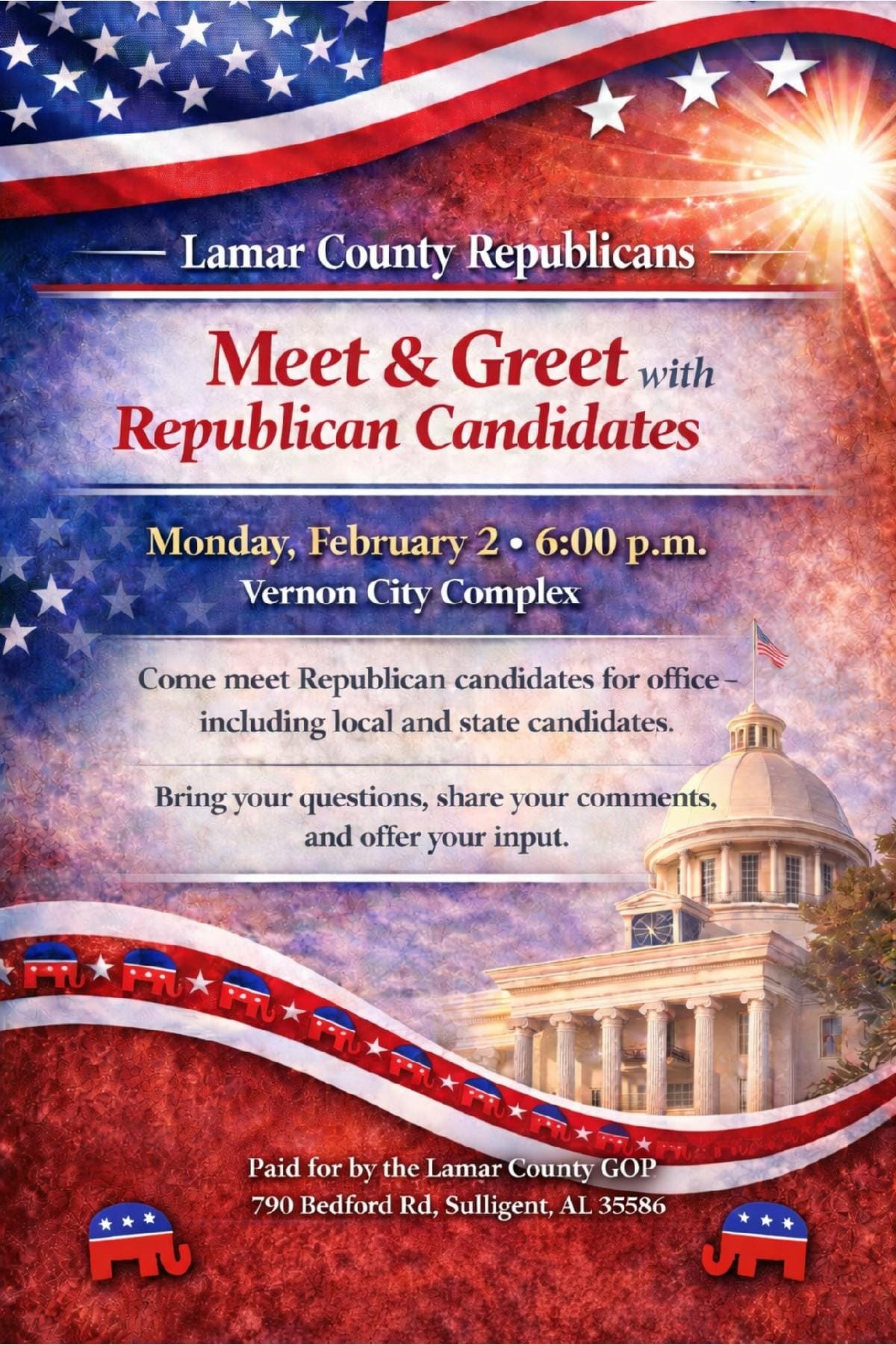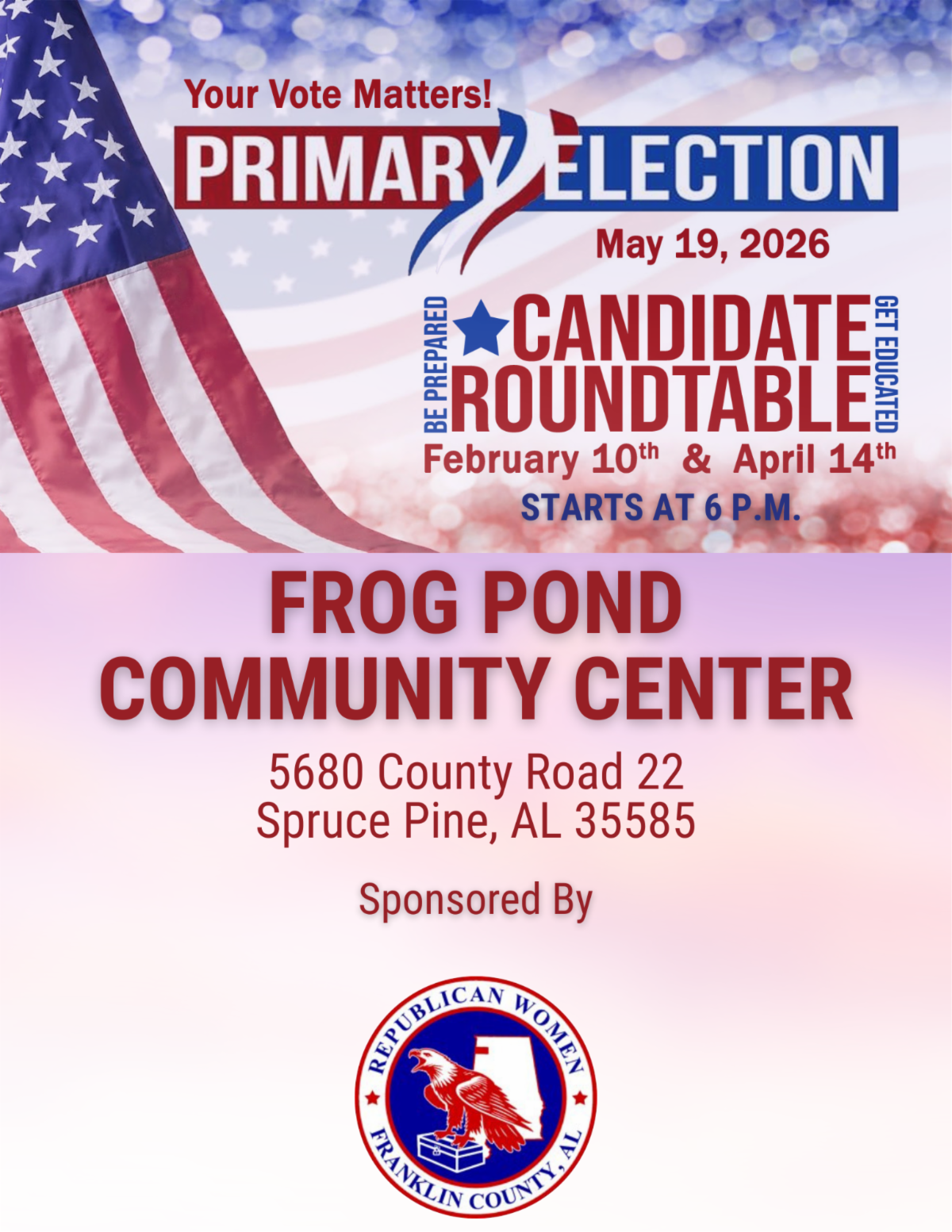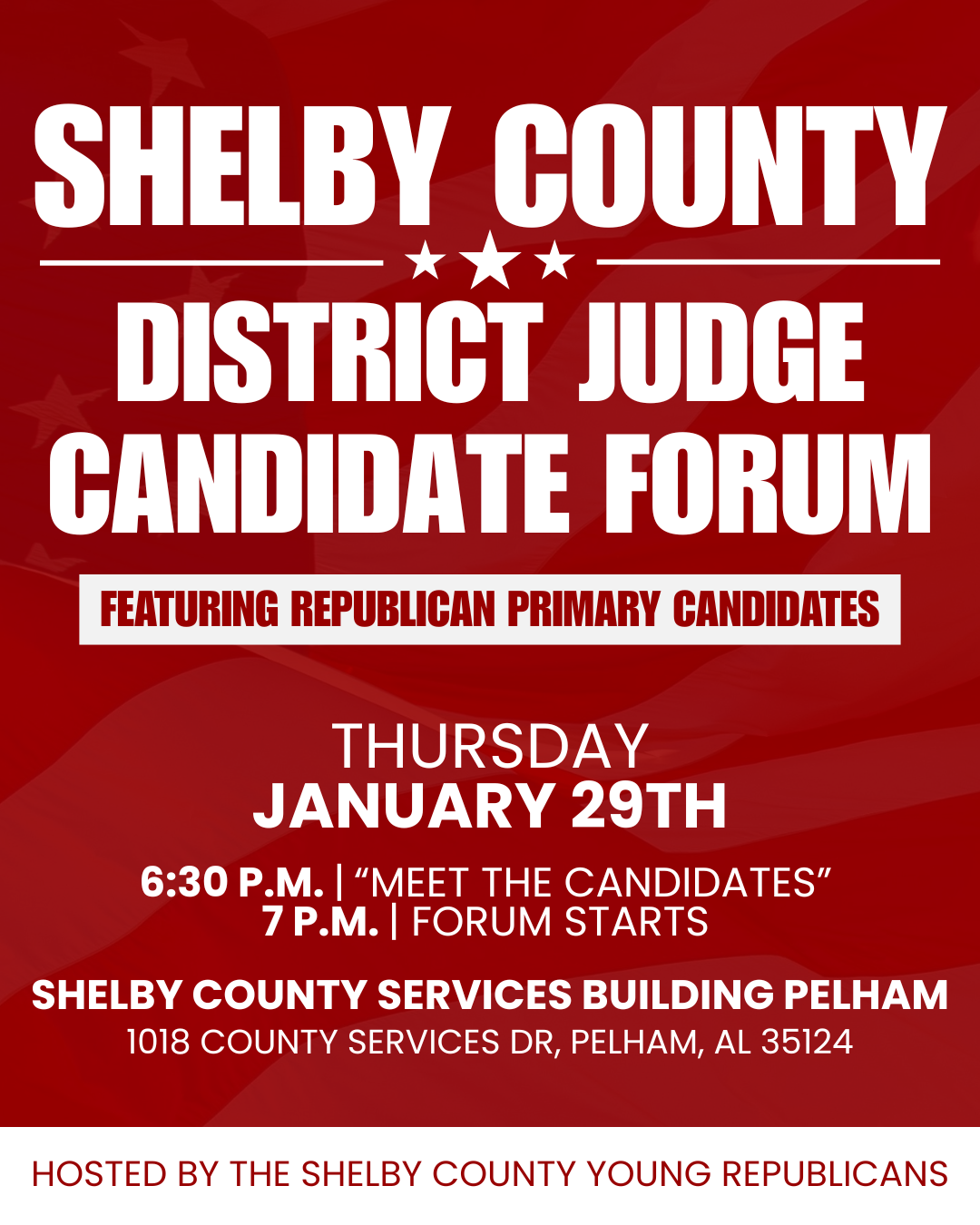 This email is part of a regular update from the Alabama Republican Party to help keep you informed throughout primary season. We look forward to sharing upcoming events and opportunities to connect with Republican candidates as we gear up for what promises to be an exciting election year.